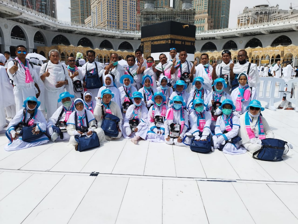 Jamaha haji Kloter 19/SUB berfoto di pelataran masjidil haram